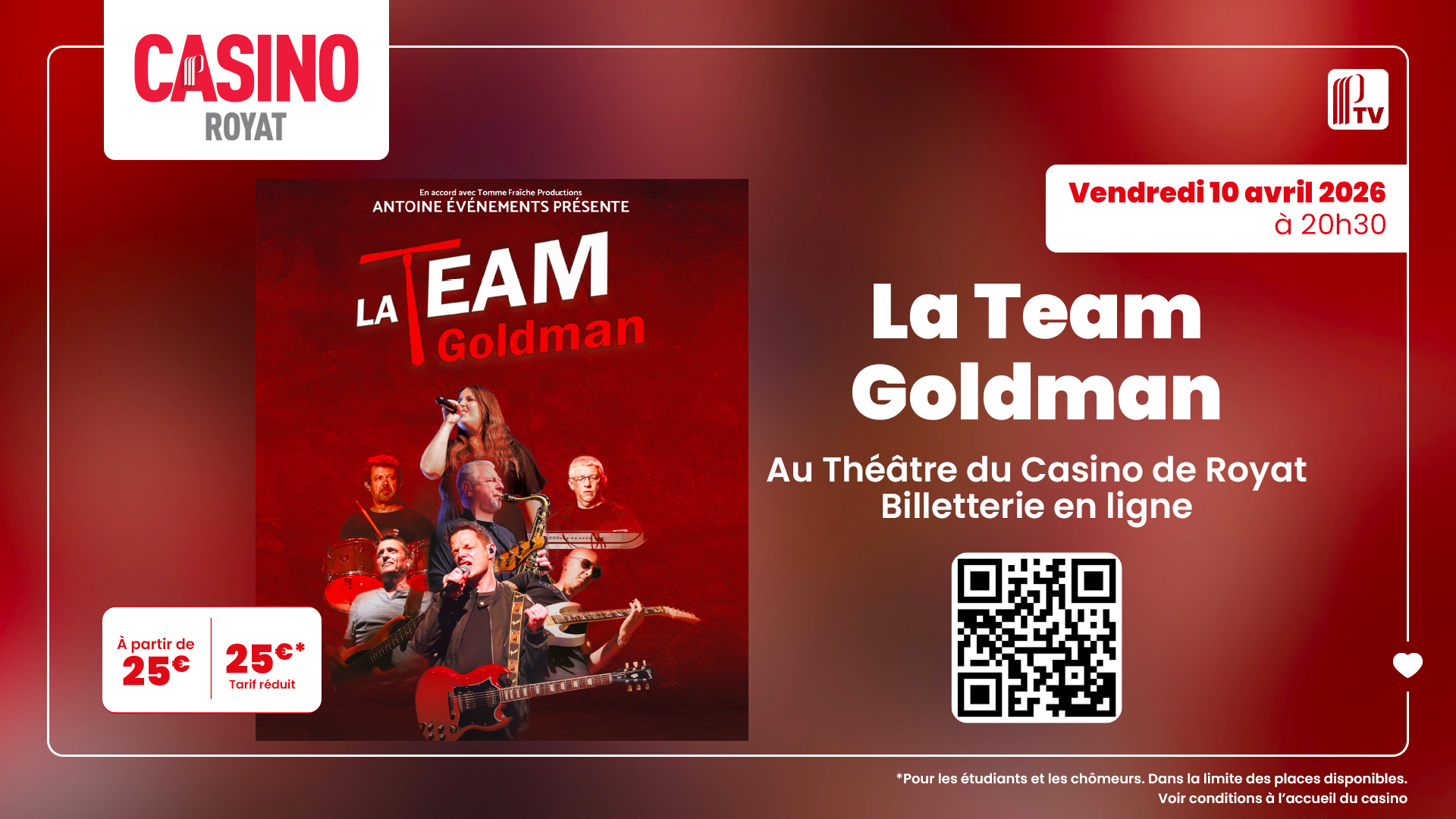 Le 10 avril, nous aurons la joie de retrouver le public au Casino de Royat pour un nouveau moment musical autour de l’univers de Jean‑Jacques Goldman.